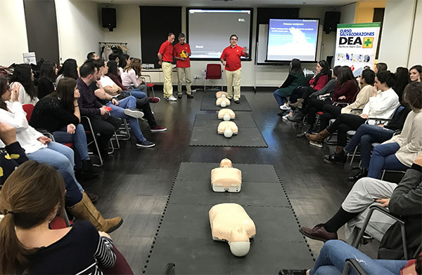 Los alumnos han podido desarrollar una parte práctica mediante el uso de maniquíes, mascarillas, desfibriladores y otros medios materiales en la que se les ha explicado pormenorizadamente las características de la evaluación inicial del estado de la persona que requiere la atención sanitaria (consciencia, respiración, pulso, hemorragias graves..) así como la forma correcta de aplicar el protocolo de reanimación cardiopulmonar (masaje cardíaco y ventilación).
