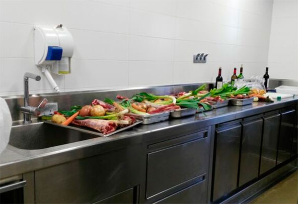 Continuaron la visita hacia el aula de catas, preparada con sus respectivas zonas de desagües en cada puesto para poder descartar el líquido de las catas y por último visitaron el aula-taller de cocina donde los alumnos realizan los exámenes, una cocina tremendamente equipada con 14 puestos completos para trabajar: plancha, fogón, horno, amasadoras, robots de cocinas y todo tipo de utensilios de cocina.